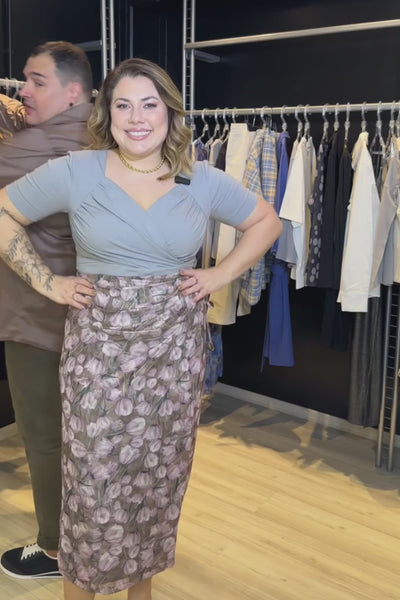 Confeccionada em malha estruturada com elasticidade e toque macio, oferece caimento fluido e modelagem confortável que se adapta com suavidade a diferentes momentos.