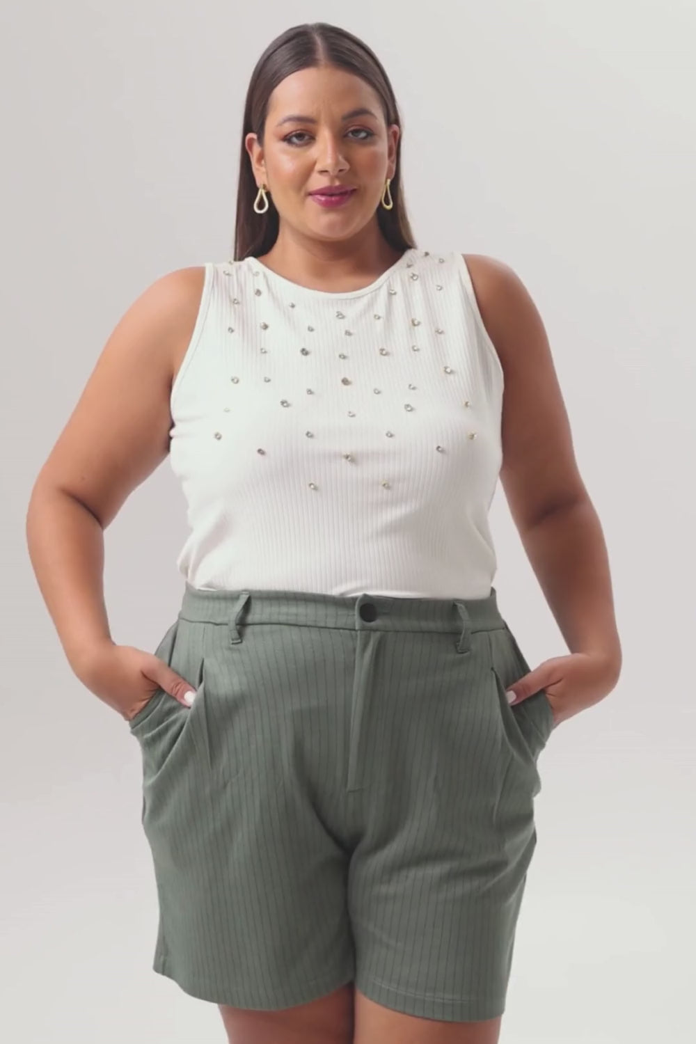 Regata Plus Size Canelado com Strass Júlia Branco Cess