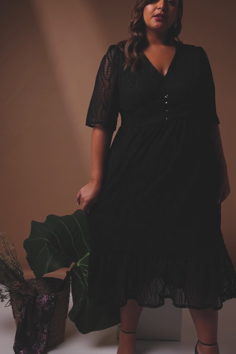 Vestido Midi Plus Size em Renda Com Laço Ansellia Preto Cess